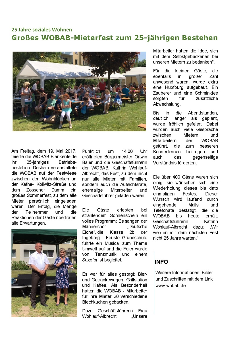 01.05.2017 - Großes WOBAB-Mieterfest zum 25-jährigen Bestehen