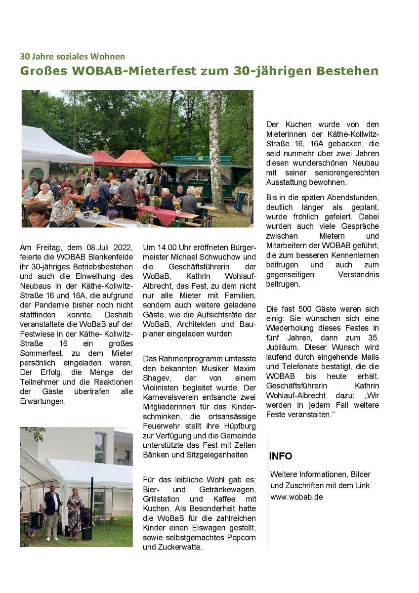 08.07.2022 - Großes WOBAB-Mieterfest zum 30-jährigen Bestehen